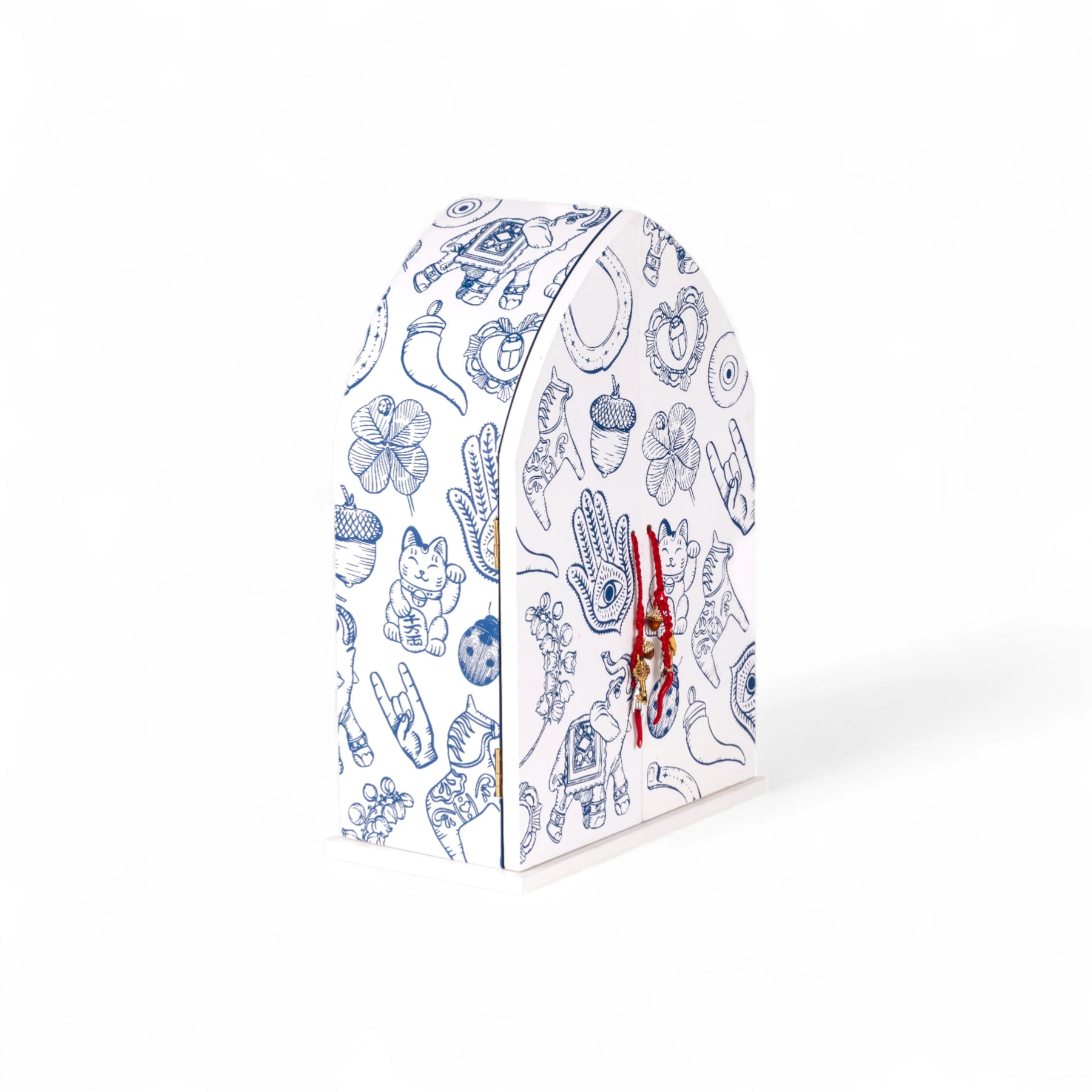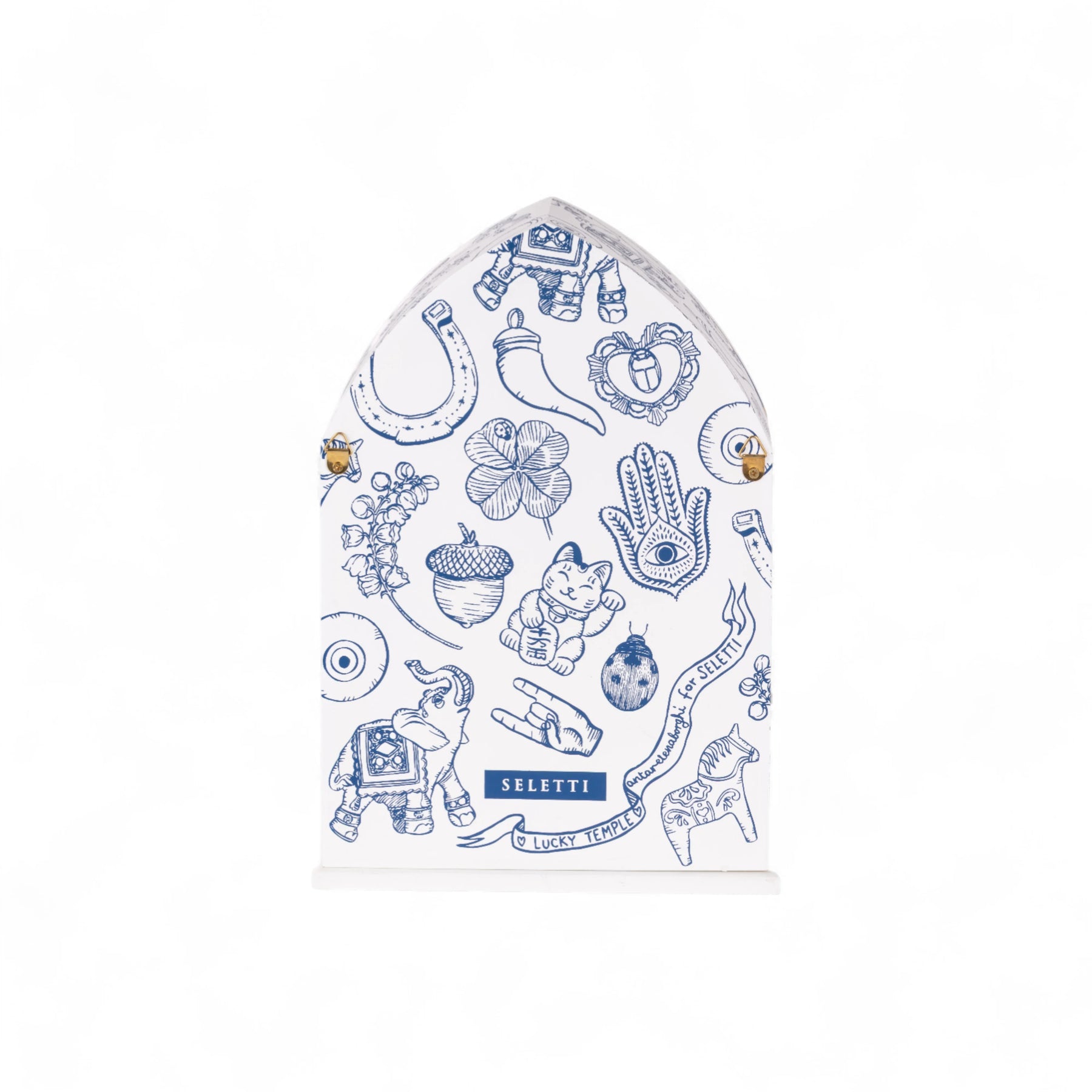 Il Lucky Temple di Seletti è un totem contemporaneo dedicato alla buona sorte, un oggetto simbolico che raccoglie amuleti e richiami spirituali provenienti da diverse culture. Pensato come un vero catalizzatore di energie positive, diventa una piccola architettura domestica che invita alla consapevolezza, alla protezione e alla fiducia in ciò che nasce dentro di noi.