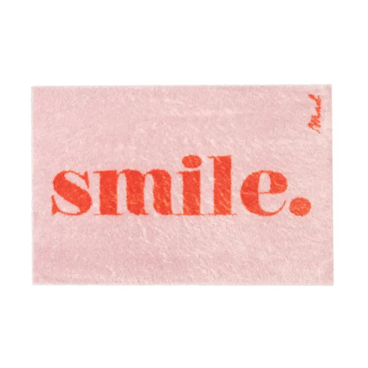 Zerbino Smile Rosa, perfetto sia per interni che per esterni. Il suo design moderno con la scritta “smile.” in rosso su fondo rosa lo rende un complemento d’arredo allegro e accogliente, ideale per dare un tocco di positività all’ingresso di casa.