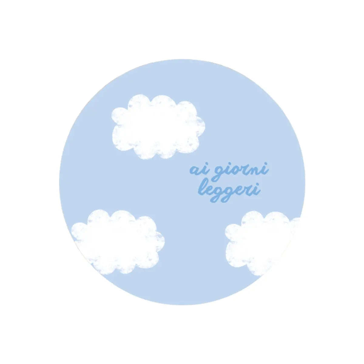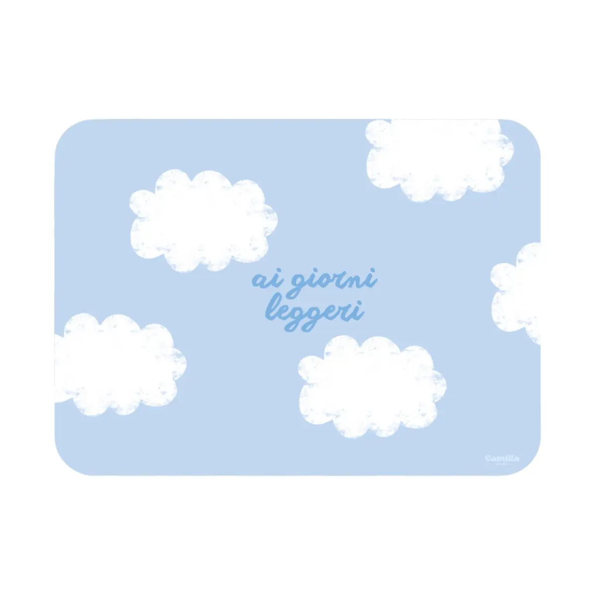 Le morbide nuvole bianche su sfondo azzurro ricordano la bellezza dei momenti semplici, quelli in cui tutto sembra più leggero.