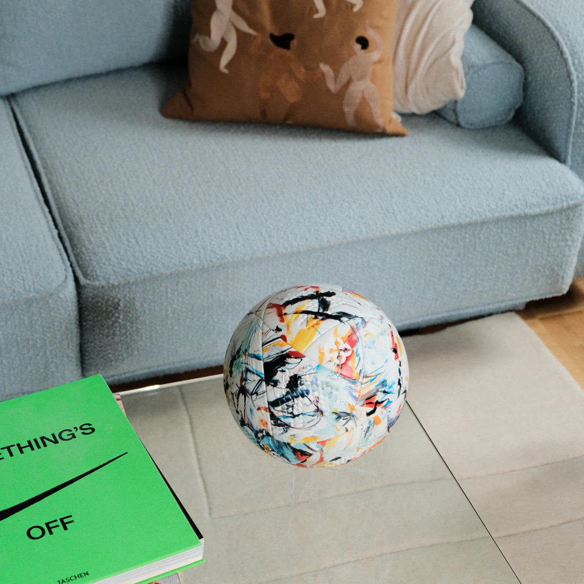 The Velocity Football reinvents the classic white ball with an explosion of colour and movement. Hand-decorated with soft, irregular brushstrokes, it breaks traditional symmetry to become a true piece of contemporary art: each stroke is unique, evoking the instinctive energy of modern art and a Picasso-like spontaneity.